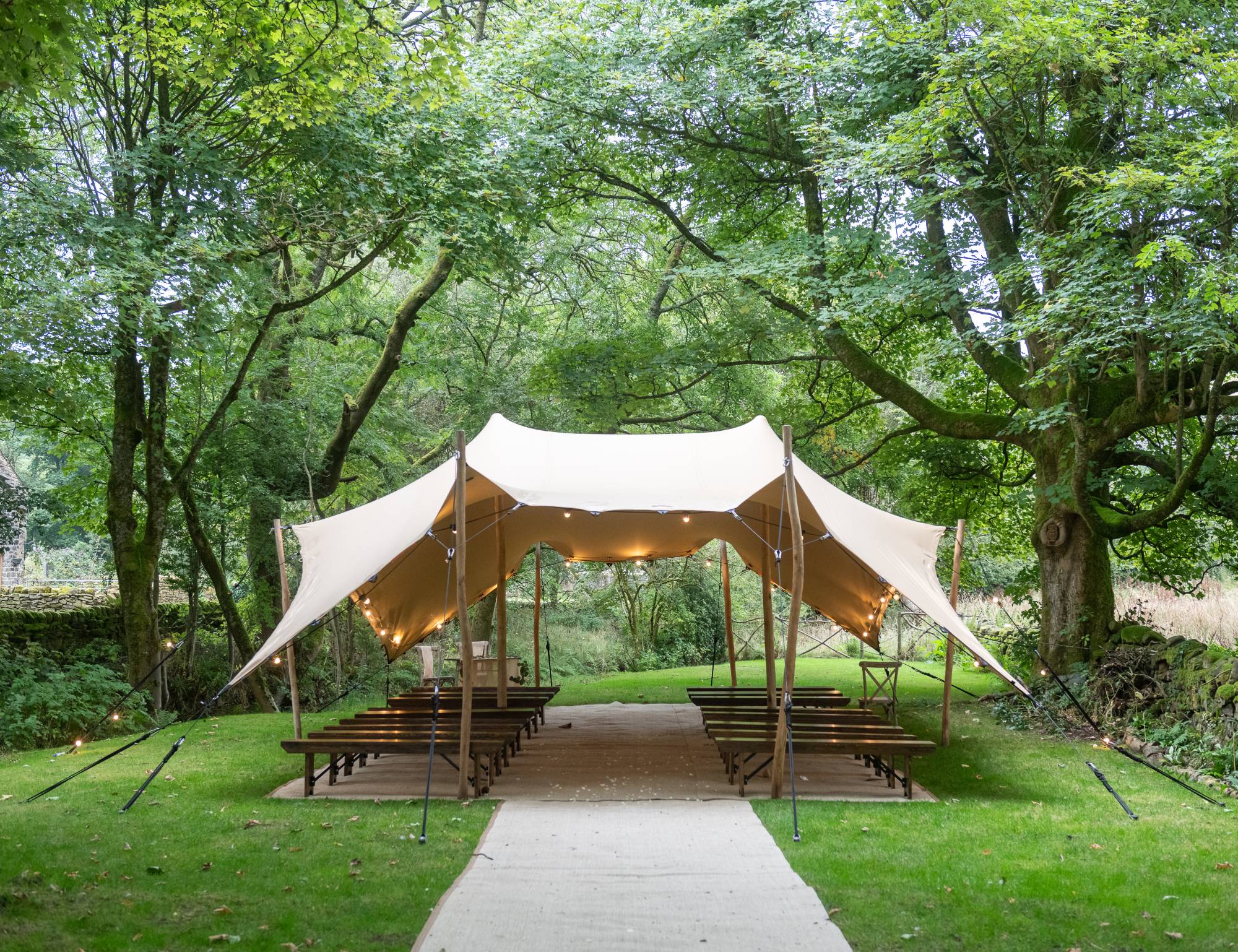 Countryside Events offer a wide range of different sized stretch tents, perfect for sheltering you and your guests during your outdoor wedding ceremony. With matting, lighting and seating, we can provide all you need to create a beautiful pop-up wedding ceremony space.
