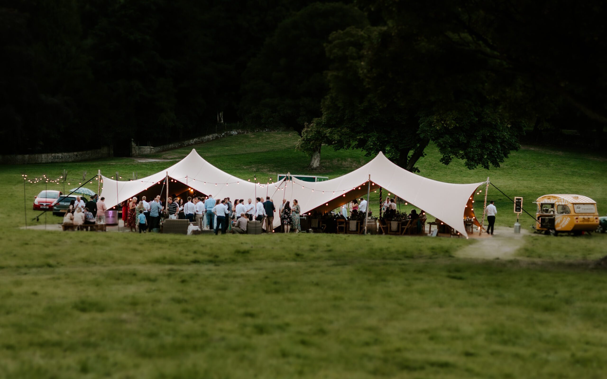 With a vast range of stretch tents and stretch marquees in Barnard Castle, Countryside Events has something to suit all manner of events including weddings, festivals, corporate events and private parties. We can rig our stretch tents on both grassed and hard-standing surfaces, along with attaching them to buildings, whilst ensuring minimal disruption to the site. We can also help with all sorts of other accompaniments for your event, including (but not limited to) event furniture, power, lighting, walkways, bars, dance floors and many other useful bits and bobs to create an unforgettable experience.
